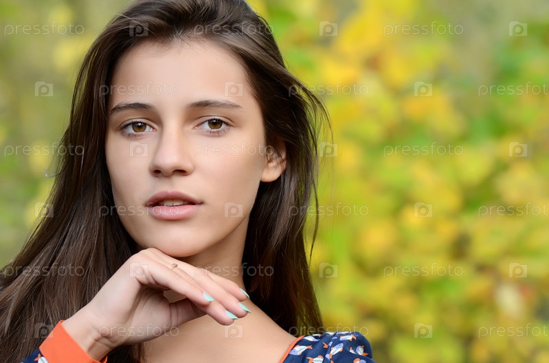 Портрет молодой девушки с осенней листвой