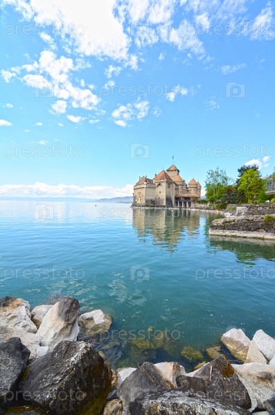 Шильонский замок на берегу озера Женева в Швейцарии