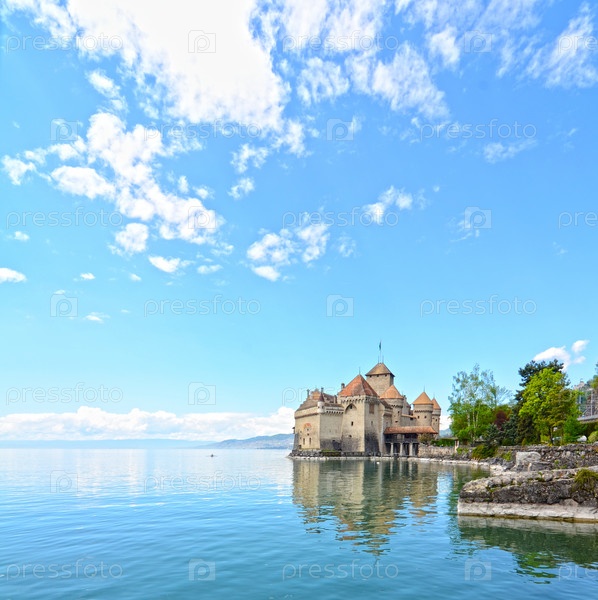 Шильонский замок на берегу озера Женева в Швейцарии