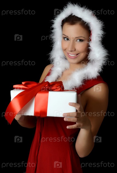 Рождественская девушка с подарком