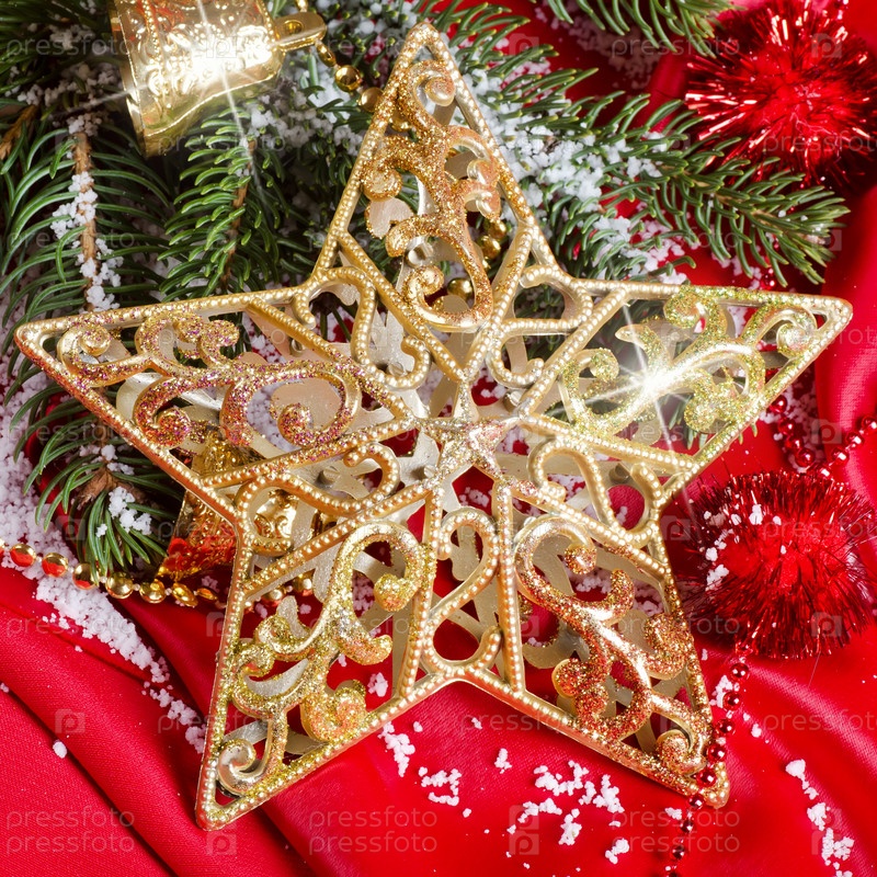 Новогодняя звезда на красной ткани
