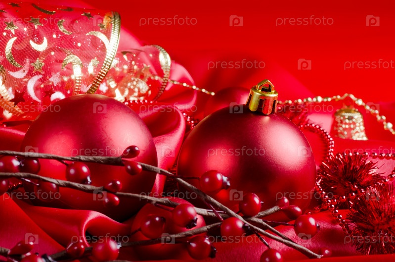 Новогодние шары на красной ткани