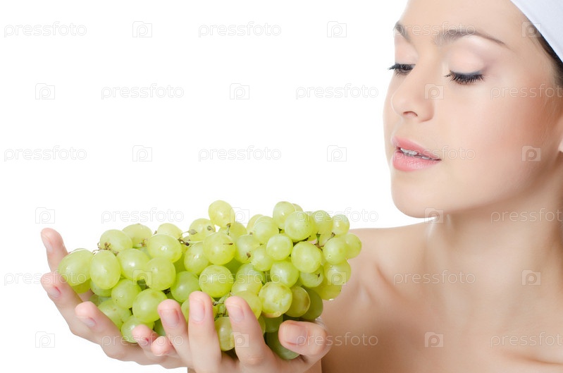 Красивая женщина с виноградом
