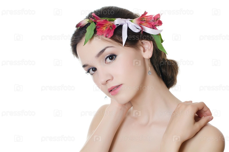 Портрет красивой девушки с цветами в волосах