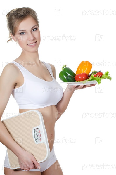Красивая девушка с тарелкой овощей