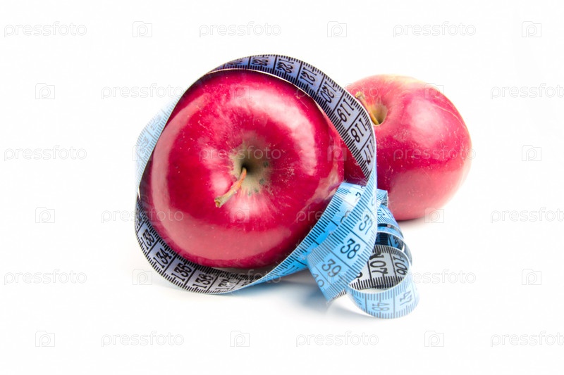 Свежие спелые яблоки и метр как элемент здоровья