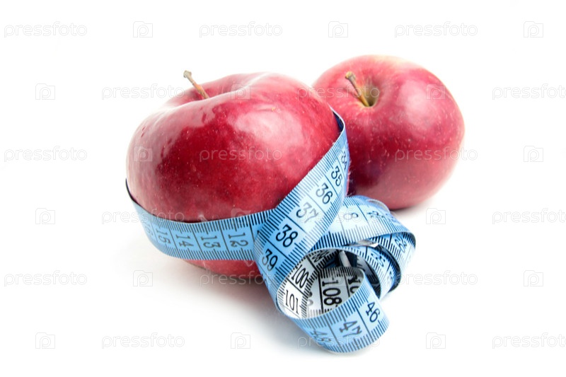 спелое яблоко и сантиметр как элемент здоровья