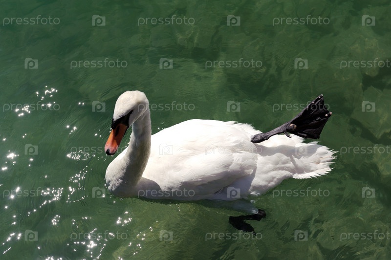 Белый лебедь в озере