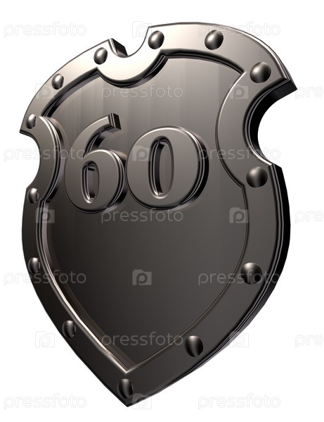 Металлический щит с номером 60 на белом фоне - 3d иллюстрация