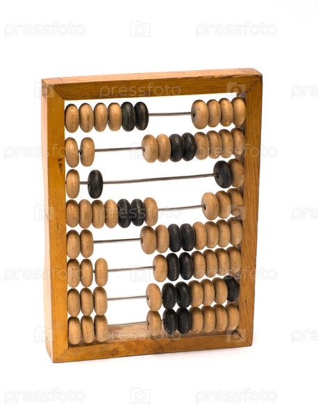 Старые деревянные счеты, изолированные на белом фоне