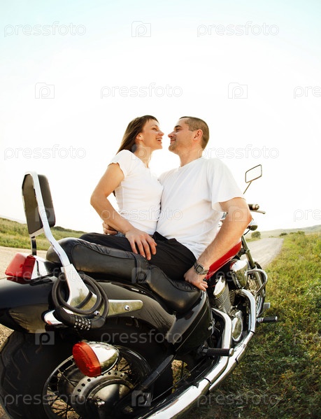 Пара молодых мотоциклистов на проселочной дороге