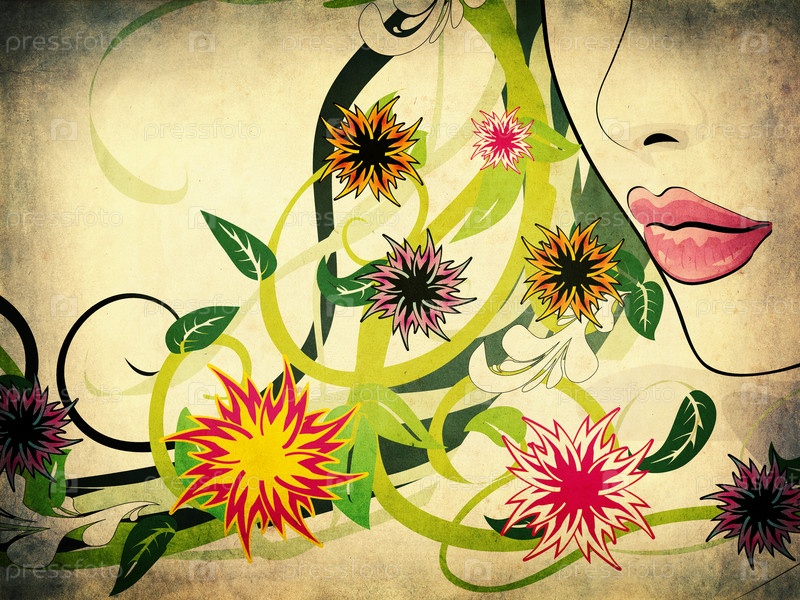 Гранжевый фон с летней девушкой