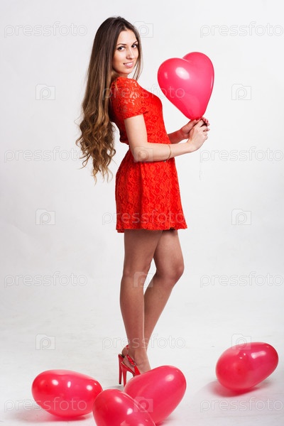 Женщина держит красные шары, день Святого Валентина