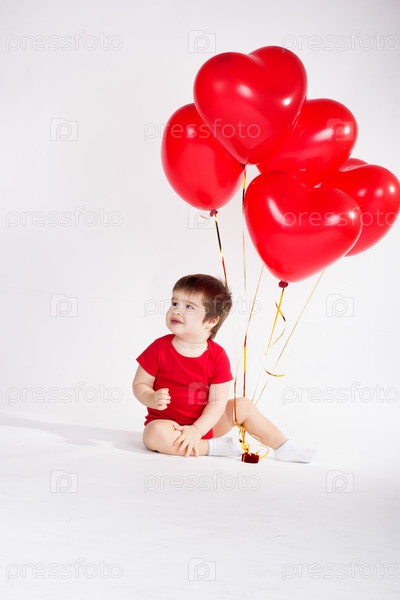 Мальчик с красными шарами. День Святого Валентина