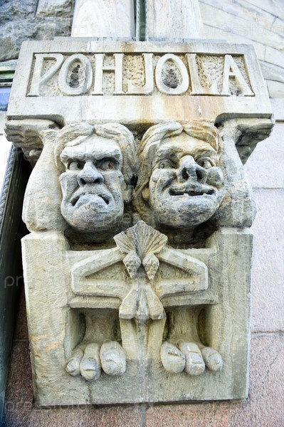 Персонажи из финского национального эпоса на фасаде здания в Хельсинки