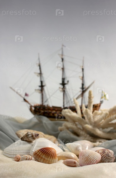 Ткань, ракушки и корабль