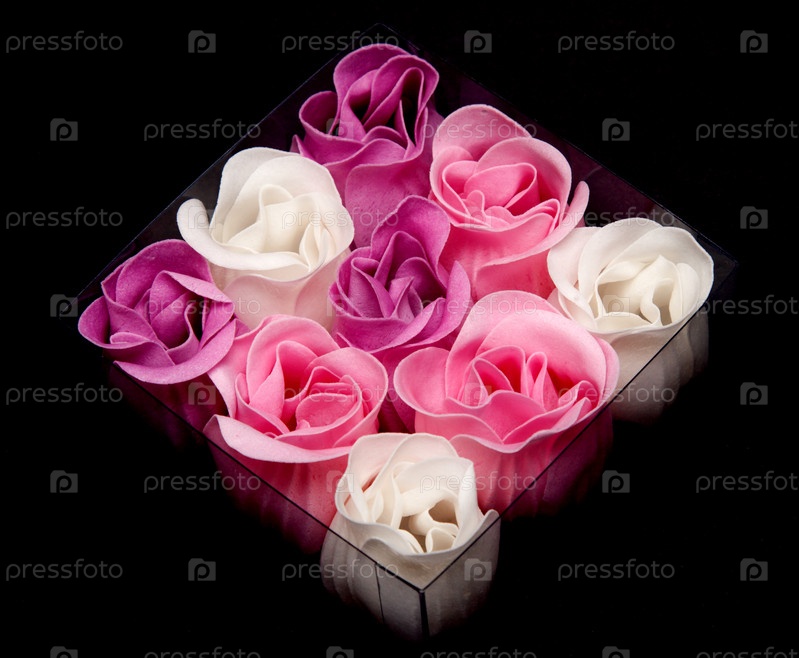 Розы в коробке в подарок на черном фоне