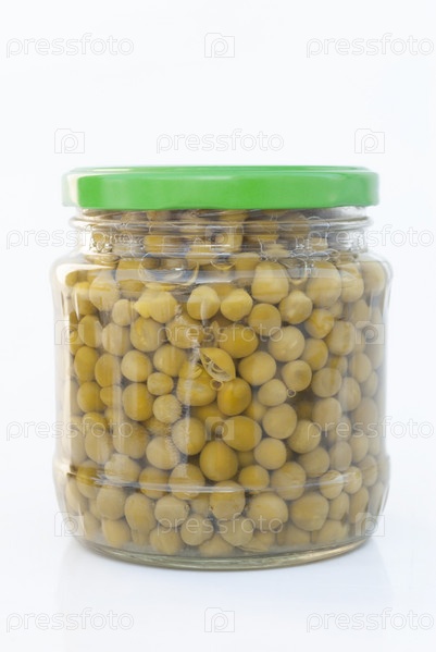 Консервированный зеленый горошек в стеклянной банке