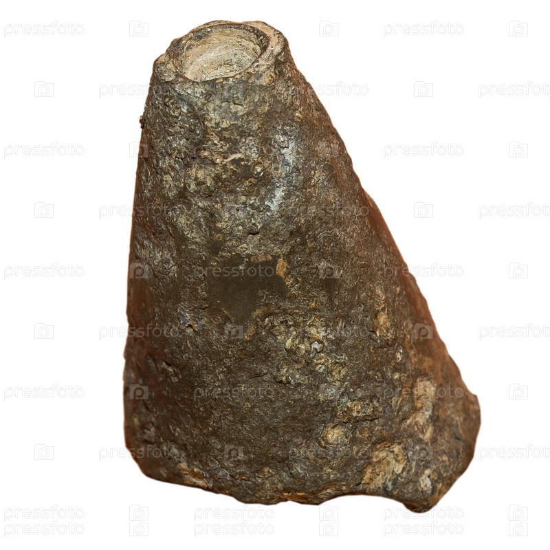 Ржавый осколок снаряда времен Великой Отечественной войны, изолированный на белом