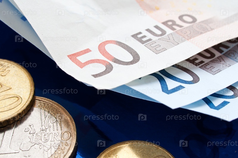 Банкноты и монеты евро крупным планом