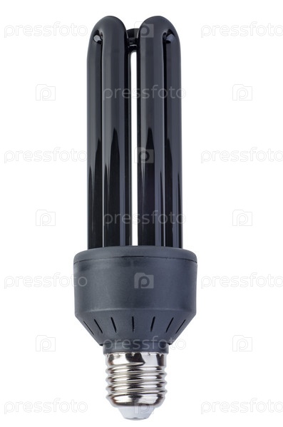 Энергосберегающая "черная" (ультрафиолетовая) лампочка, изолированная на белом фоне