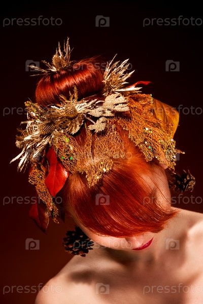 Портрет рыжеволосой девушки с роскошной прической и макияжем
