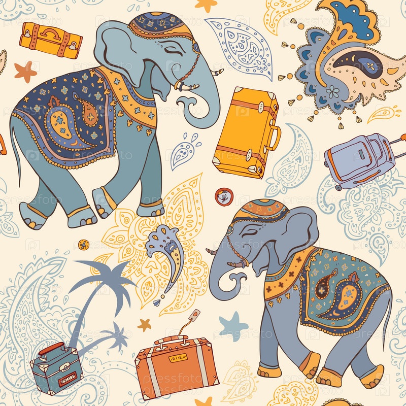 Векторная иллюстрация слона. Путешествия, орнамент