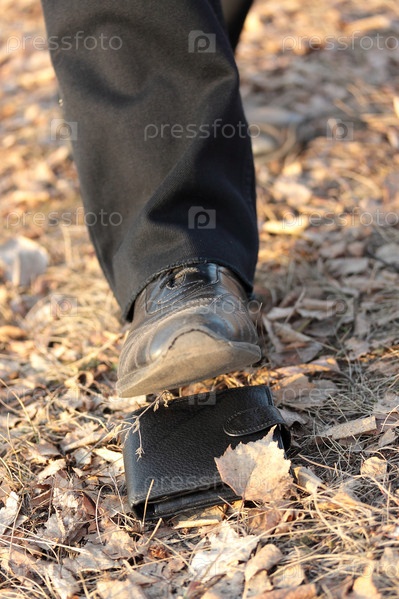 Осенний финансовый кризис. Мужчина наступает на бумажник
