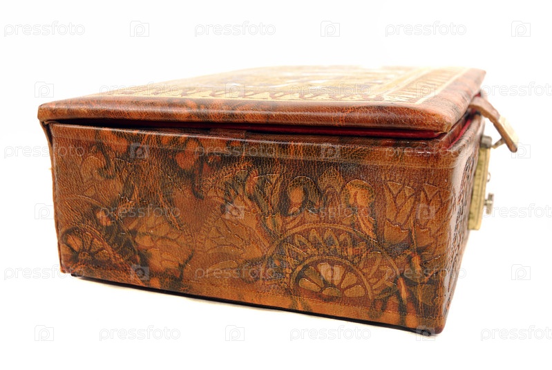 Кожаная шкатулка для хранения украшений на белом фоне