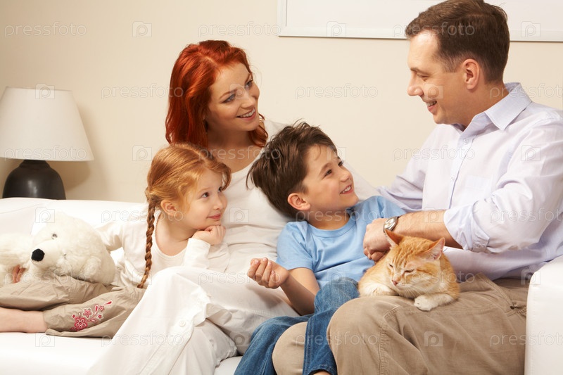 Фото симпатичного мальчика, обнимающего свою красивую мать в окружении игривой дочери и их отца