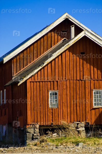 Старый дом в норвежской деревне в летний день