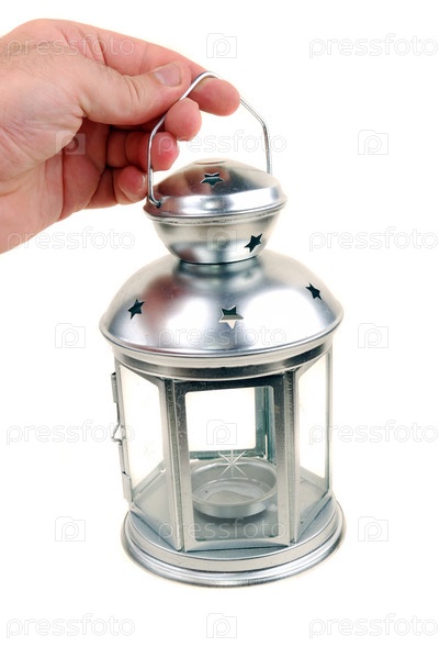 Подсвечник в руке на белом фоне