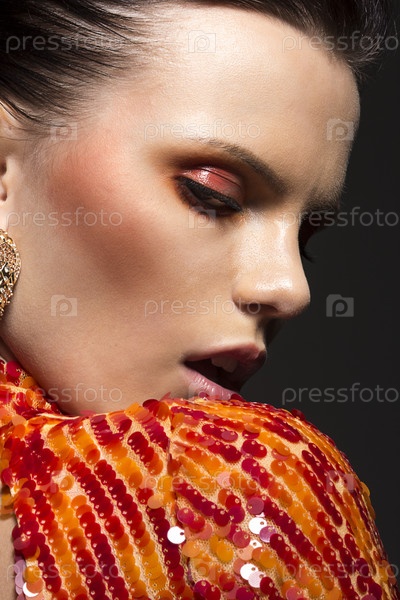 Стильный шикарный женский портрет. Элегантное платье. Стильный вечерний макияж