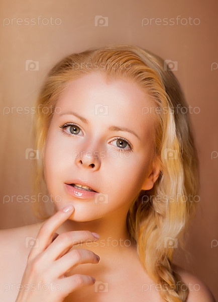 Красивая молодая блондинка прикасается к лицу