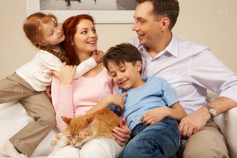Фото симпатичного мальчика, обнимающего свою красивую мать в окружении игривой дочери и их отца