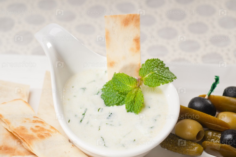 Греческий йогурт цацики и хлеб пита