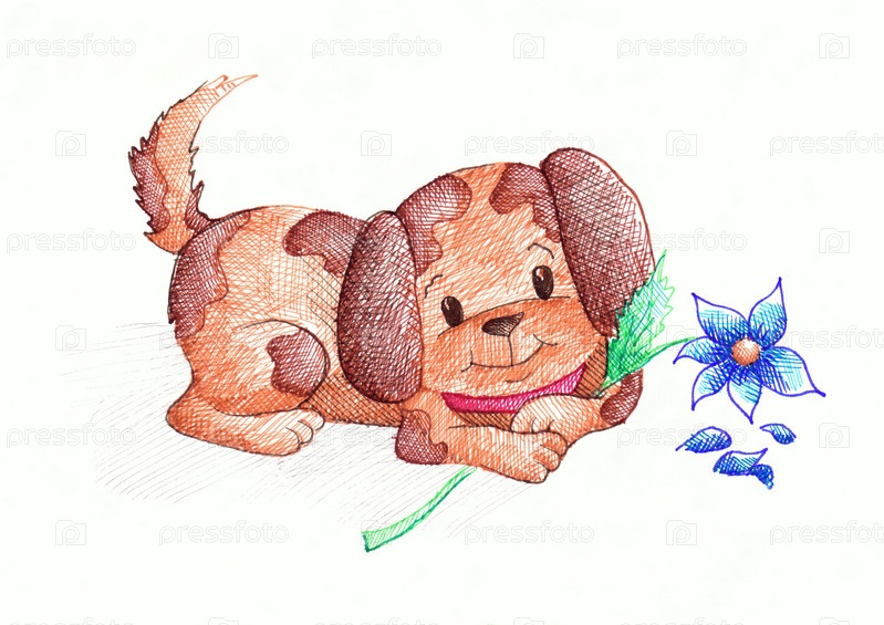 Рисунок "Щенок с цветком", маркер