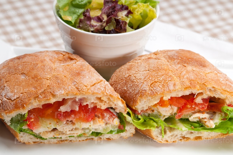 Сэндвич чиабатта панини с курицей и помидорами