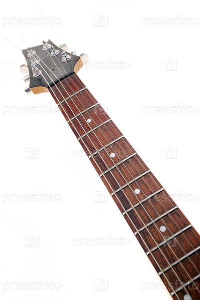 Электронная гитара на белом фоне
