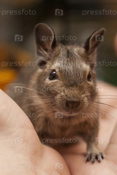 Дегу, сидящий на ладонях