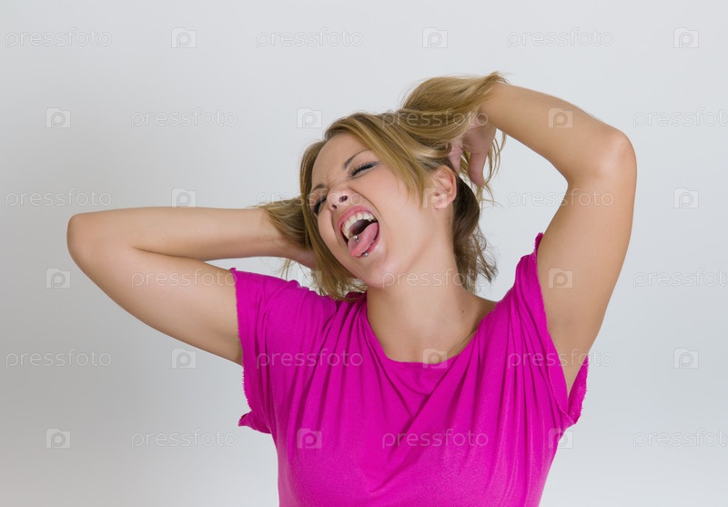 Молодая женщина делает смешное лицо