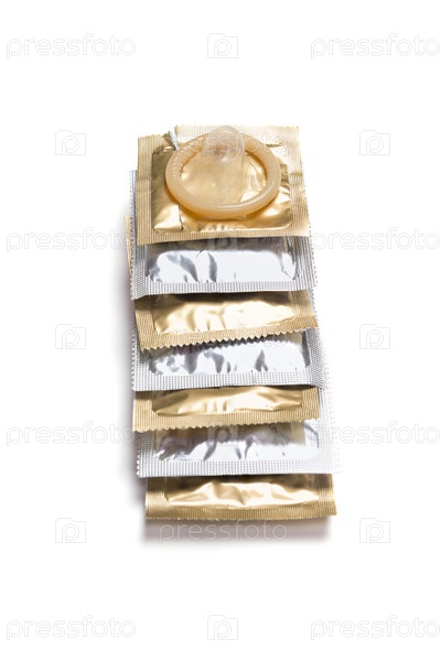 Упаковки презерватив на белом фоне