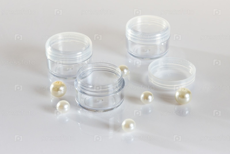 Пустые прозрачные белые пластиковые баночки