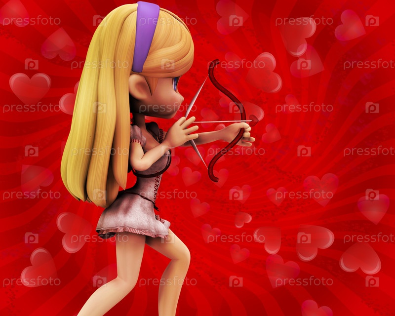 Девочка-купидон на красном фоне