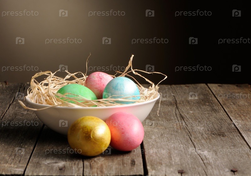 Цветные пасхальные яйца в гнезде