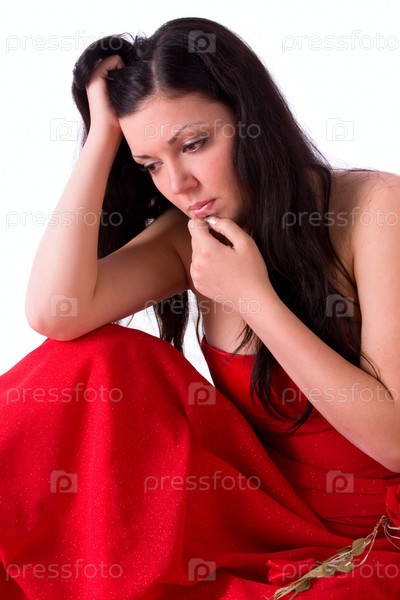 Очень печальная женщина в красном платье