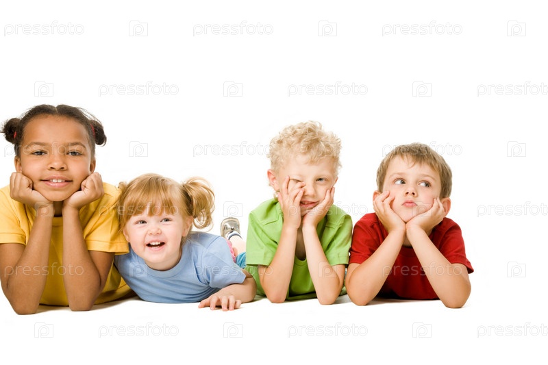 Портрет четырех детей, лежащих в очереди