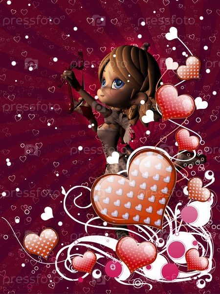 Красные сердца, цветы м купидон