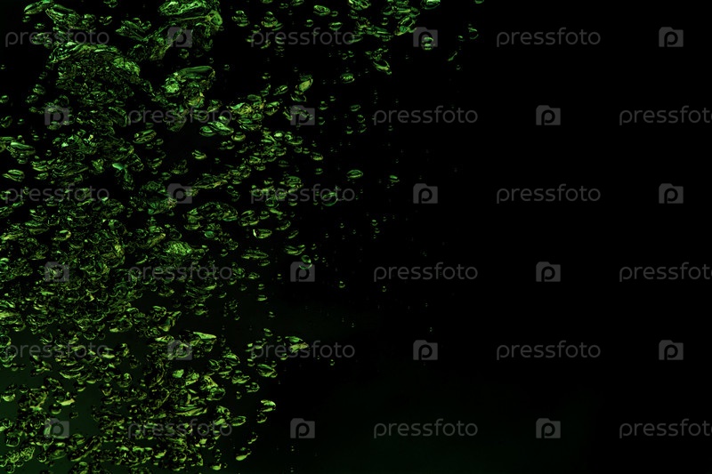 Зеленые пузырьки в воде на черном фоне