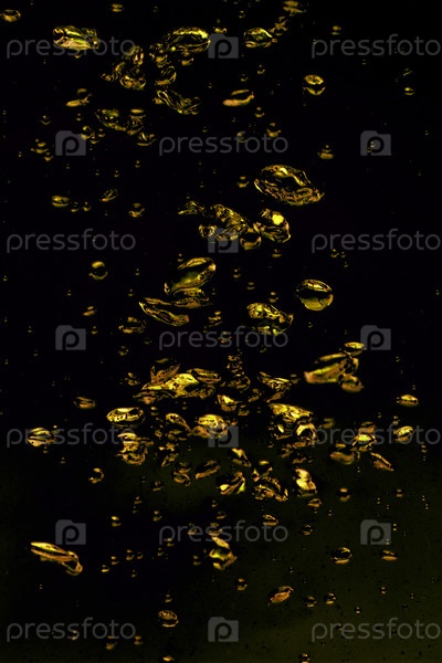 Золотые воздушные пузырьки в воде на черном фоне